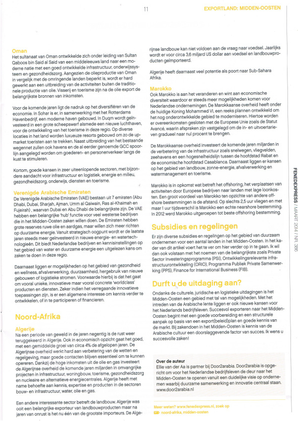 Door2arabia tekent op 11-10-2016 een samenwerkingsovereenkomst met Orange Sports Forum. Door2arabia gaat ca 300 MKB-bedrijven ondersteunen met een Starters International Business, subsidieprogramma van het Ministerie van Economische Zaken, om deze ondernemingen goed voor te bereiden om naar Qatar, Iran, Oman en Marokko te gaan exporteren.